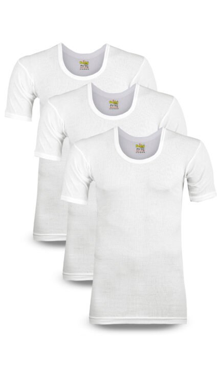 3 Piece White Men’s Rib (PV-90) Vest Hlaf Sleeves (Pack of 3)