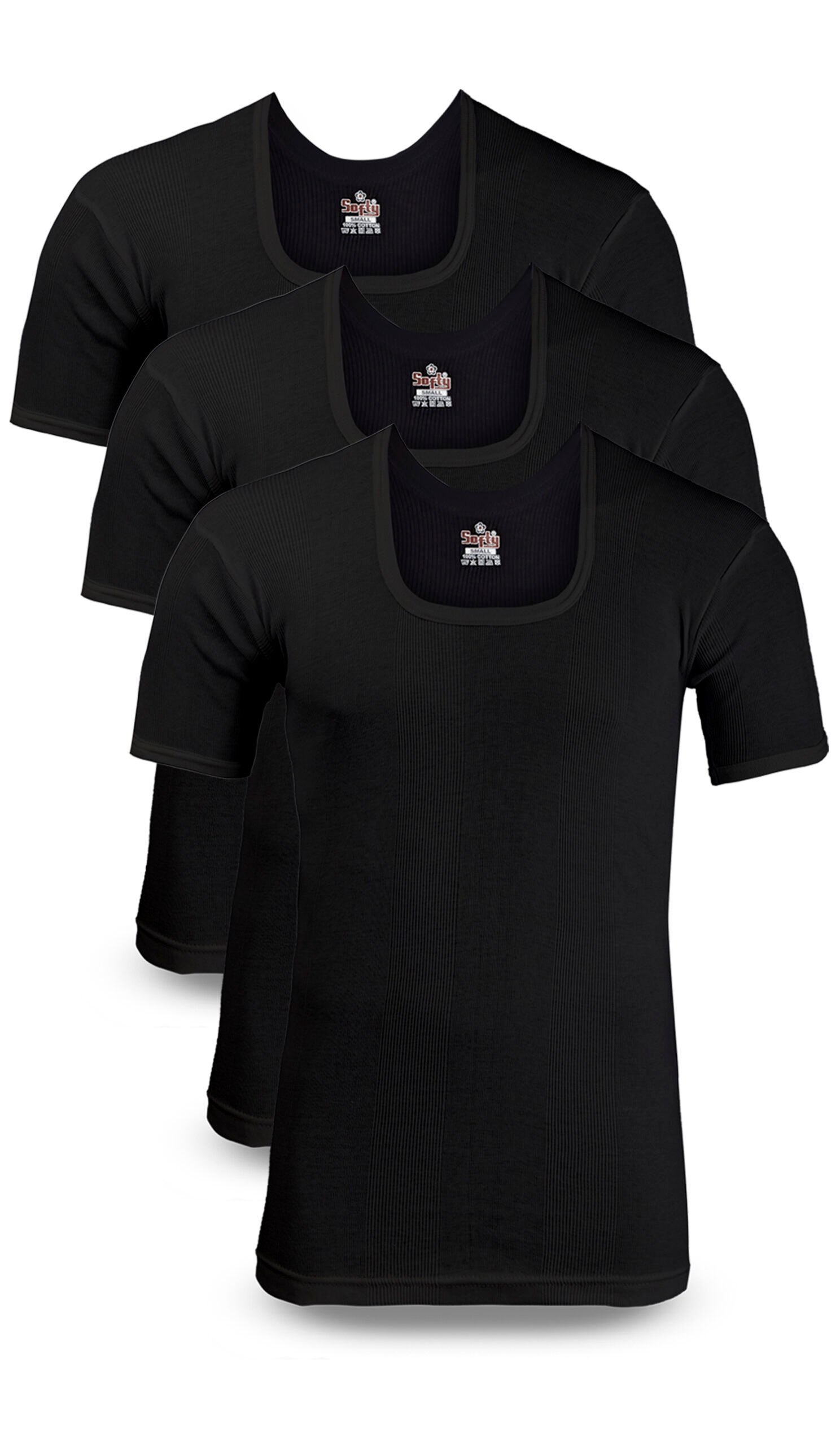 Men’s Rib (CD-60) Vest Half Sleeves (Black) (Pack of 3)