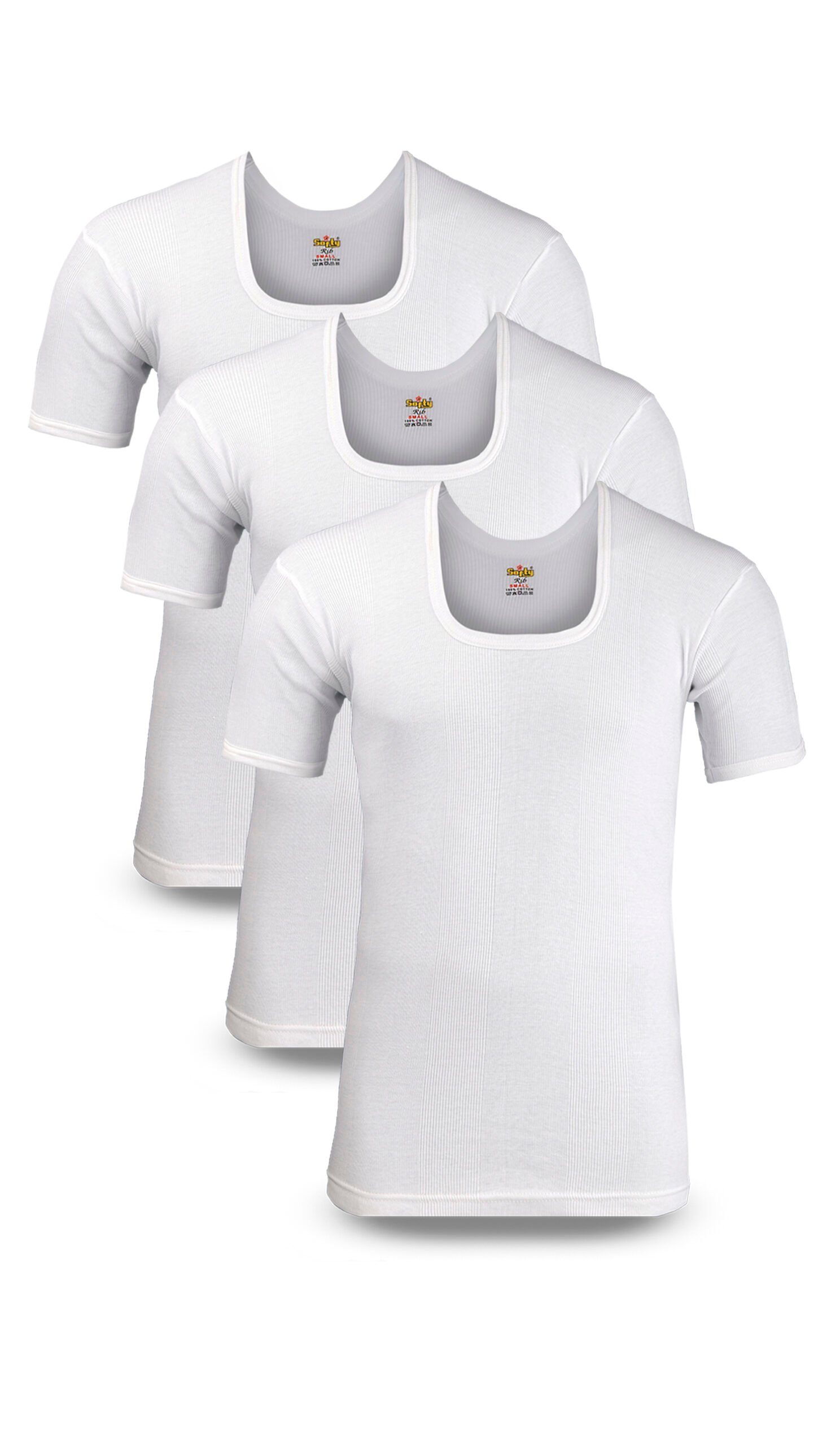 Men’s Rib (CD-60) Vest Half Sleeves (white) (Pack of 3)