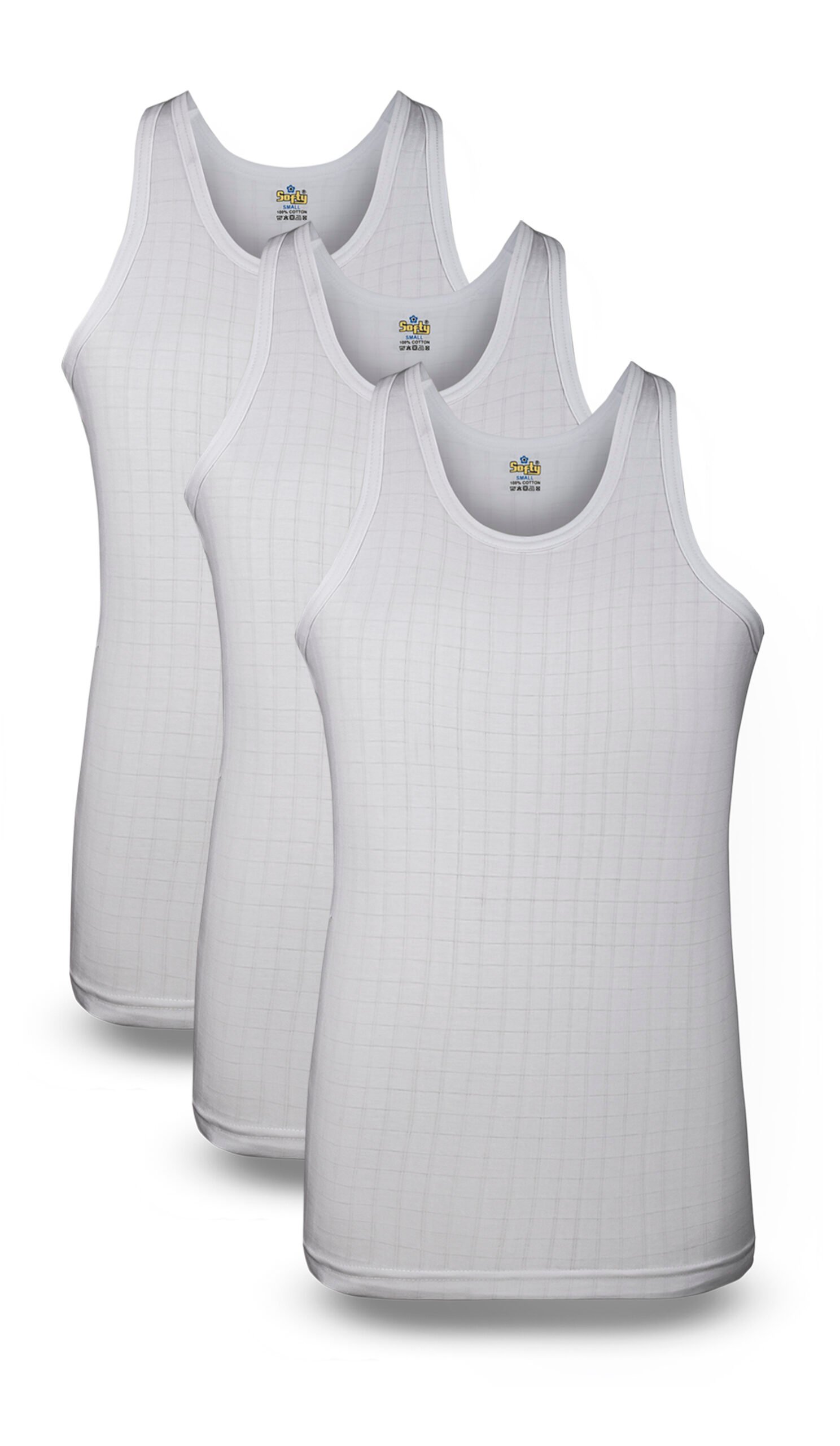 3 Piece White Men’s Summer IRISH Vest Half Sleeves (Checked Design) (Pack of 3)
